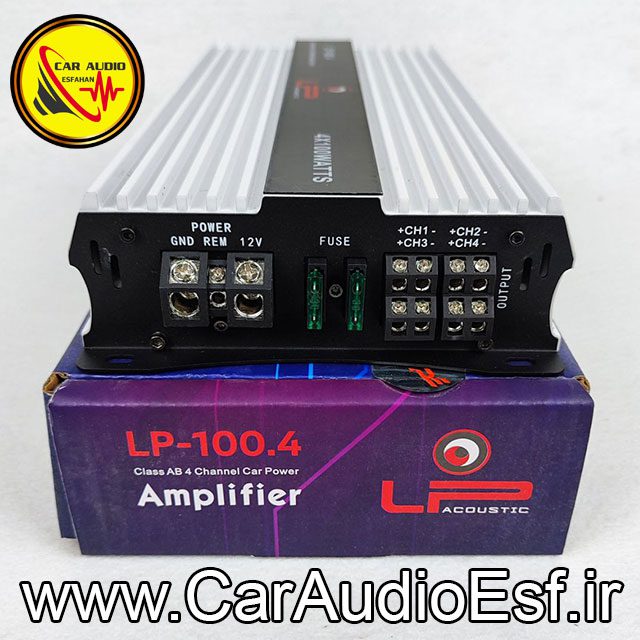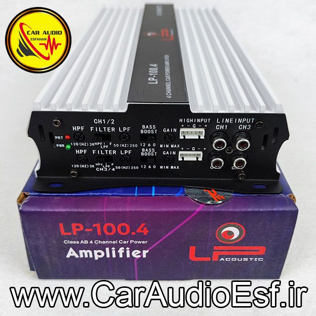 آمپلی فایرچهارکانال ال پی مدل LP-100.4: همه ی ما به دنبال یک آمپلی فایر مطمئن برای وسیله ی نقلیه ی خود هستیم. اما اکثرا در انتخاب یک آمپلی فایر مناسب به مشکل بر میخوریم. علت آن هم فراوانی زیاد محصولات و عدم تطابق بازه و قدرت صدای محصولات با هم است. اما کار آدیو اصفهان با بررسی دقیق محصولات و ارائه مشاوره صحیح این مشکل را حل کرده.
