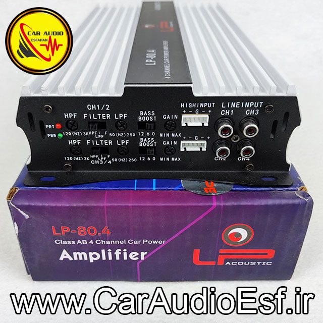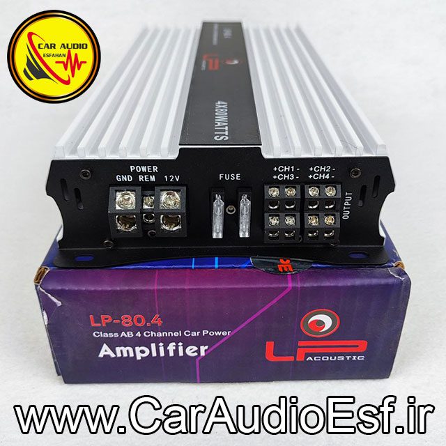 آمپلی فایرچهار کانال ال پی مدل LP-80.4: همه ی ما به دنبال یک آمپلی فایر مطمئن برای وسیله ی نقلیه ی خود هستیم. اما اکثرا در انتخاب یک آمپلی فایر مناسب به مشکل بر میخوریم. علت آن هم فراوانی زیاد محصولات و عدم تطابق بازه و قدرت صدای محصولات با هم است. اما کار آدیو اصفهان با بررسی دقیق محصولات و ارائه مشاوره صحیح این مشکل را حل کرده.